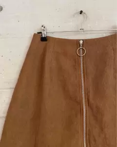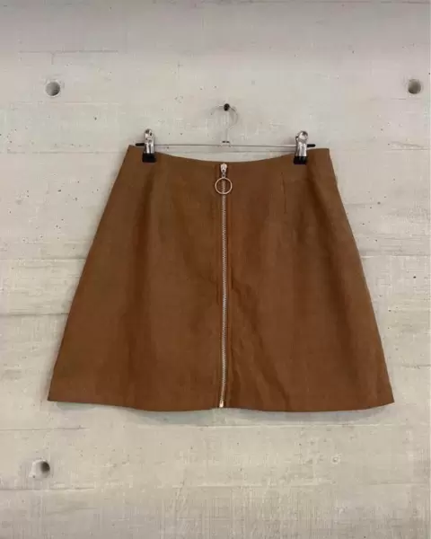 Falda mini de pana con cremallera color marrón, la tela es delgada pero no transparenta, viene amplia por lo que da a una talla M. Perfecta para otoño-invierno.