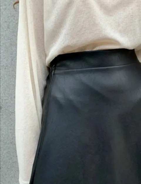 Falta de PU color negra, talla L pero queda a M, trae en un costado cierre y por atrás un resolte, la vendo ya que me quedo muy apretada a pesar de se L, medidas:Cintura 70-74Caderas 94-98