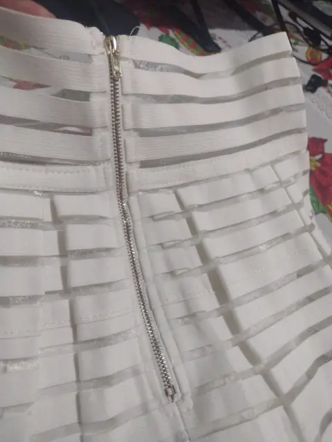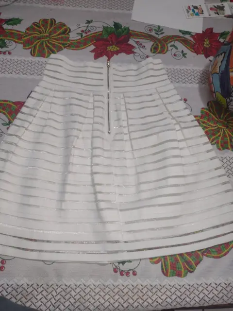 Falda de resorte beige sin etiquete en perfecto estado cierre en buen estado es metálico sin ningún defecto o detalle. Cintura 34 cadera 46 largo 41 cm, cabe señar qué tiene 4 filas de resorte arriba de la cintura.