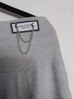 Falda de textura waffle con cadena. Falda amplia corte a la cadera, tela suave y elástica con textura de waffle, 96 cm cintura, 101 cm cadera, 48 cm largoEnvío a la brevedadTodas las compras incluyen obsequioHago envío único
