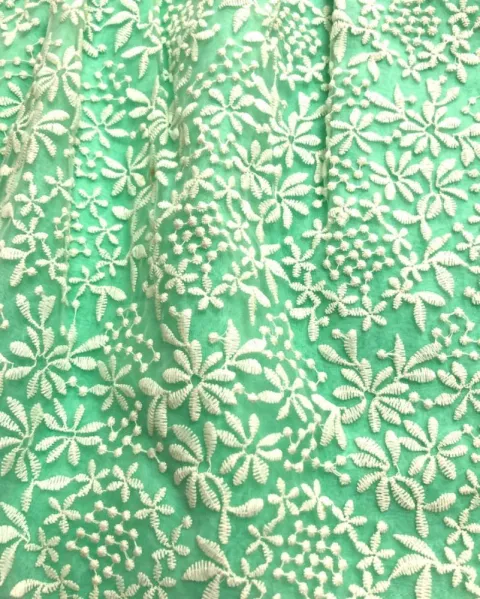 Faldita de Tul bordado y con fondo en verde menta, se ve lindísima, tiene cierre en la parte lateral, la puede combinar con una chamarra de mezclilla.