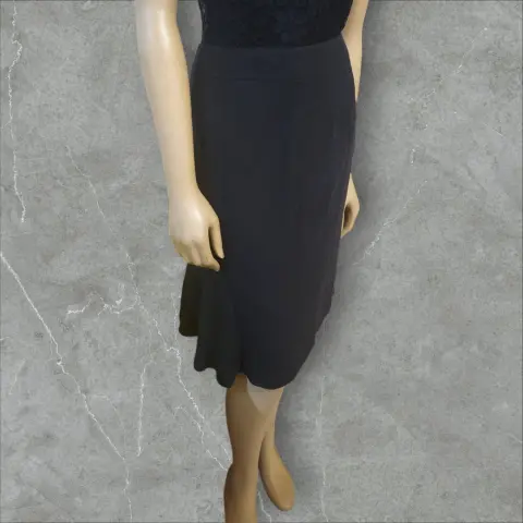 Falda De Vestir Midi Ann Taylor, talla 8 petite, color negro solido, estilo recto. Cierre y broche de ajuste, forrada por dentro, con acento de olan en la parte de abajo, Heche de acate y polyester, cintura acentuada, mide 38cm de cintura, 50cm de cadera con 58cm de largo de la cintura hacia abajo, nueva a estrenar sin etiqueta en buen estado cosmetico.
