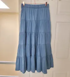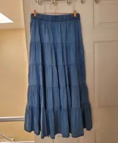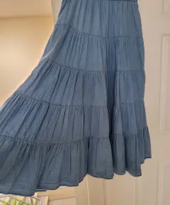 Falda en tela tipo denim, 100% algodón, largo midi, con elastico en cintura, largo total 97 cm, talla L