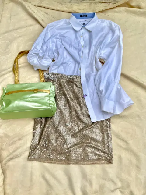 Falda dorada de lentejuelas. Hermosa falda 🪩Talla 8Con forro interiorMarca White House black marketEn perfecto estado