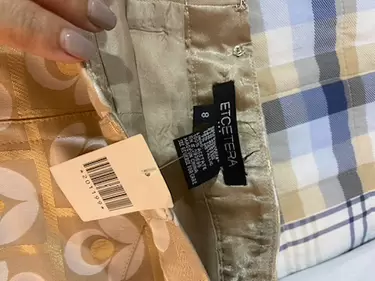 Falda dorada marca Etcetera. Hermosa falda recta con detalles dorados marca etc queda genial con blusas crop top o con tus botas favoritas, hermoso estampado, nueva con etiqueta