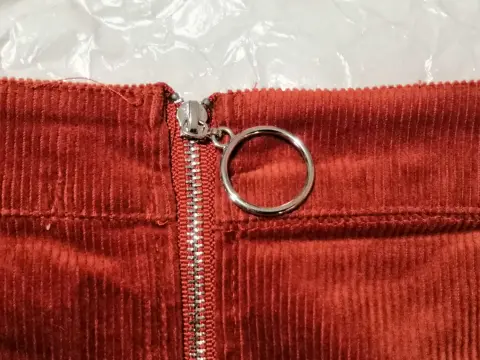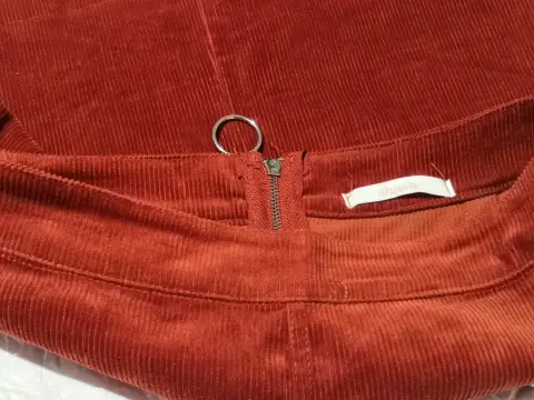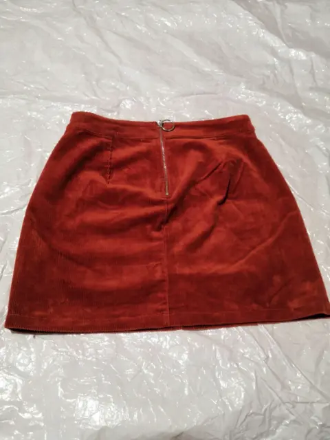 Falda en tela tipo pana color ladrillo, de largo mide 42 CM y de cintura mide 37 CM, la tela estira unos 4 CM extras en total nueva sin detalles
