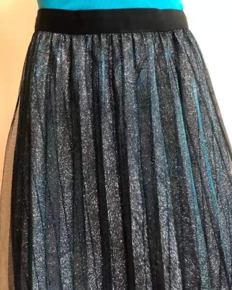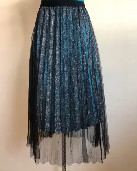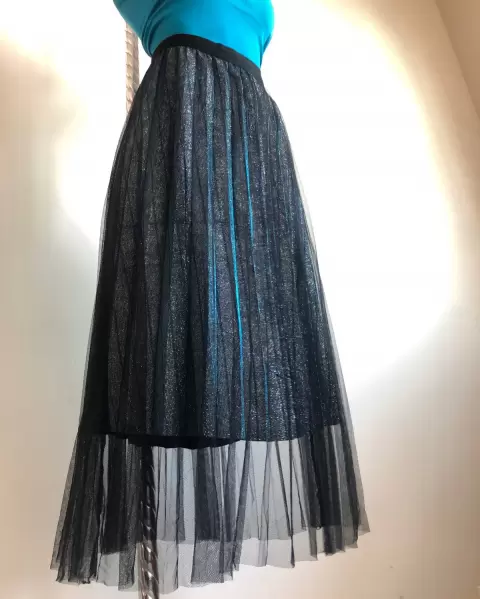 HERMOSA FALDA EN TUL COLOR NEGRO (70CM DE LARGO) CON FORRO EN DESTELLOS METÁLICOS EN COLOR AZUL Y PLATA (60CM DE LARGO) ELÁSTICO EN LA CINTURA, NUEVA CON ETIQUETA, MARCA FUENTE DE AMOR. UNITALLA, ENVÍO LA PRENDA SANITIZADA USO MATERIAL RECICLADO GRACIAS POR TU COMPRENSIÓN😊