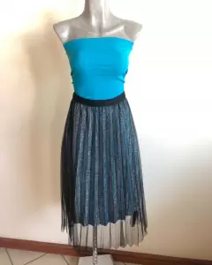 FALDA EN TUL Y FORRO FUENTE DE AMOR. HERMOSA FALDA EN TUL COLOR NEGRO (70CM DE LARGO) CON FORRO EN DESTELLOS METÁLICOS EN COLOR AZUL Y PLATA (60CM DE LARGO) ELÁSTICO EN LA CINTURA, NUEVA CON ETIQUETA, MARCA FUENTE DE AMOR. UNITALLA, ENVÍO LA PRENDA SANITIZADA USO MATERIAL RECICLADO GRACIAS POR TU COMPRENSIÓN😊
