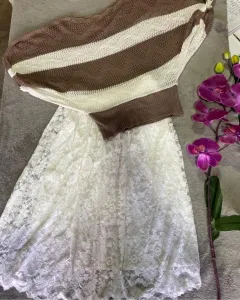 Falda encaje más blusa tejido
