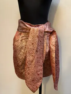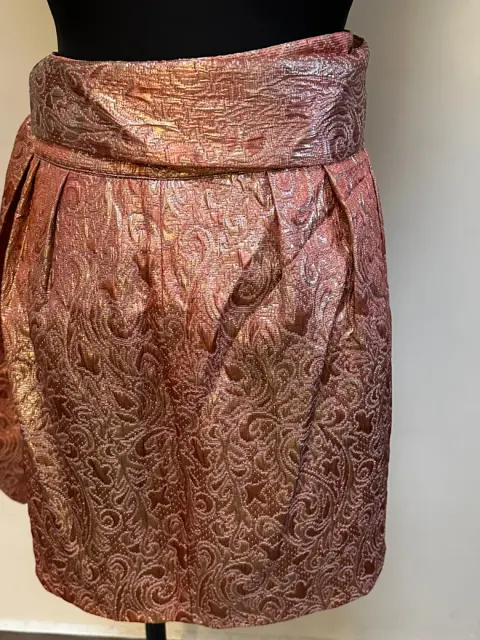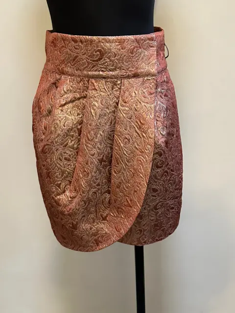Falda envolvente metalizada. Muy bella! Tiene cinturón desmontable, color cobre con forro negro. Mide de cintura 76cm y largo 50 cm