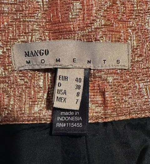 Muy bella! Tiene cinturón desmontable, color cobre con forro negro. Mide de cintura 76cm y largo 50 cm