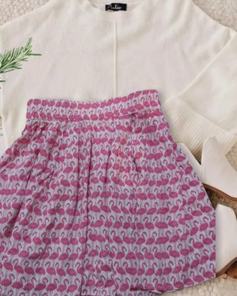 Falda flamingos. Falda estampada de flamingos, talla M, ideal para usar con tenis y camiseta.