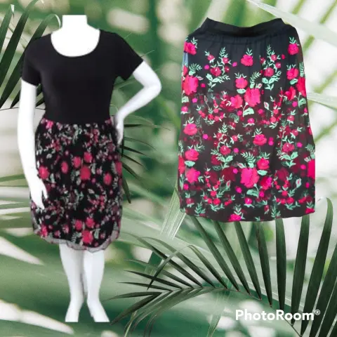 Talla m puede quedar a una talla 32/34 estira ,trae short abajo corto color negro.No esta rota de ningún lado Hermoso bordado de flores .Solo la falda a la venta