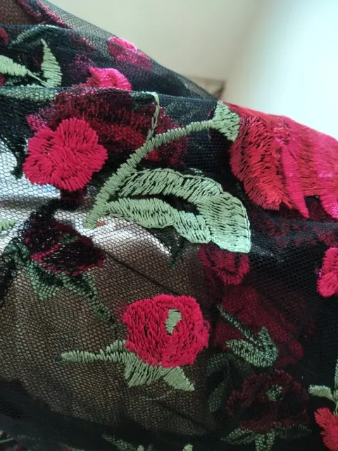 Falda flores. Talla m puede quedar a una talla 32/34 estira ,trae short abajo corto color negro.No esta rota de ningún lado Hermoso bordado de flores .Solo la falda a la venta