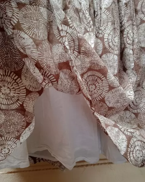 Hermosa falda, tela muy fresca con fondo incluído, sin problema queda a M ya que en la pretina tiene resorte, llega arriba de la rodilla, ideal para vacacionar o si vives en climas calurosos