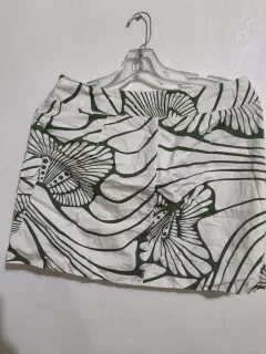 Falda corta, estampado color verde, botones enfrente, y cintas para ajustar la cintura.
