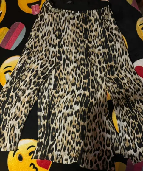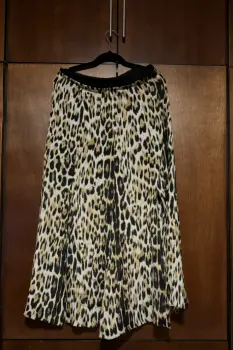 Falda larga,una puesta, con abertura en los lados de frente y de atrás,aleopardada, Talla: 8.