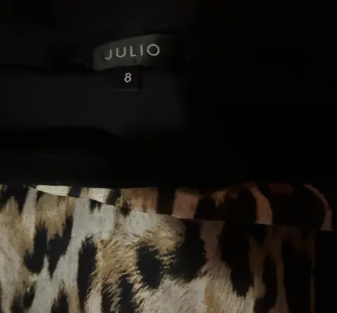 Falda Julio. Falda larga,una puesta, con abertura en los lados de frente y de atrás,aleopardada, Talla: 8.