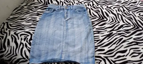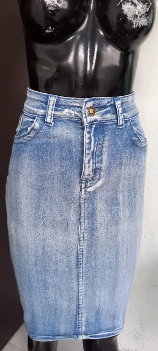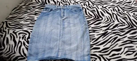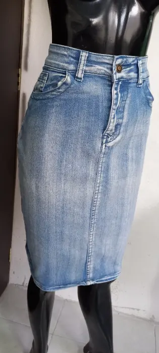 Falda lapiz de mexclilla claro con bolsas. TALLA MMARCA JAY BASICCOLOR AZUL CLAROSTRECH SITELA POLIESTER Y SPANDEXMEDIDAS CINTURA 41 CMCADERA 53 CMLARGO 63 CM DESDE LA CINTURA ALTALas medidas son de lado a lado de la prenda