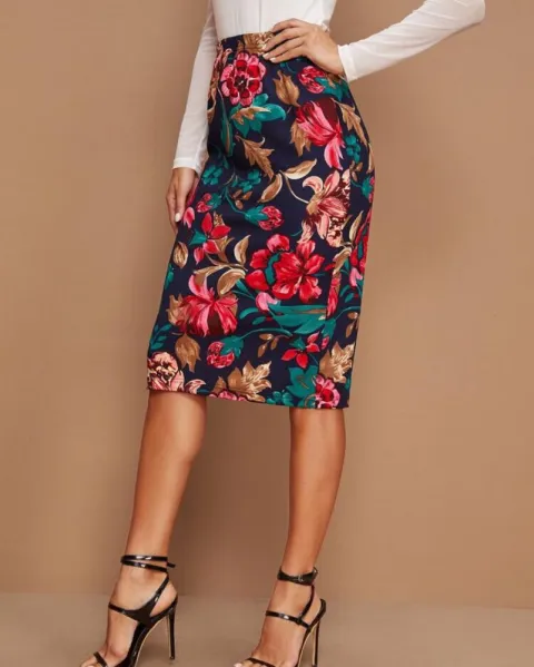 Falda Lápiz Shein con estampado floral