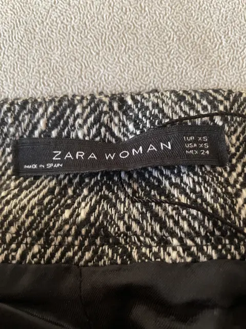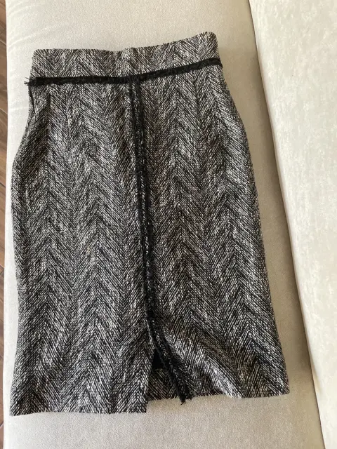 Falda lápiz Zara. Falda de tiro alto Lápiz color gris con negro de punto tipo lana talla Mex 24, cierre lateral, con forro negro y una ligera abertura en la parte de atrás