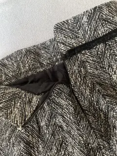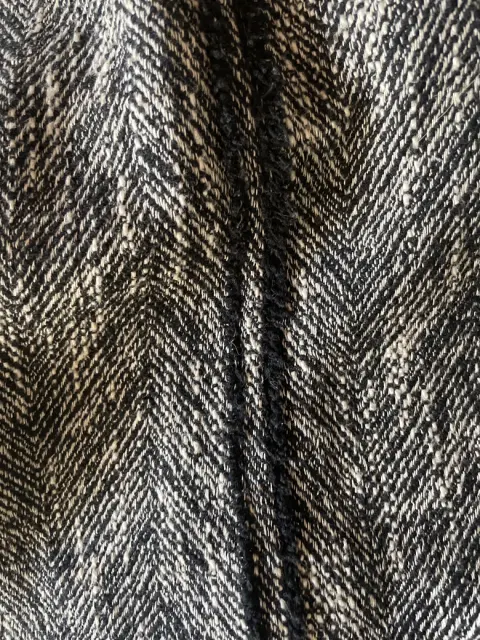 Falda de tiro alto Lápiz color gris con negro de punto tipo lana talla Mex 24, cierre lateral, con forro negro y una ligera abertura en la parte de atrás