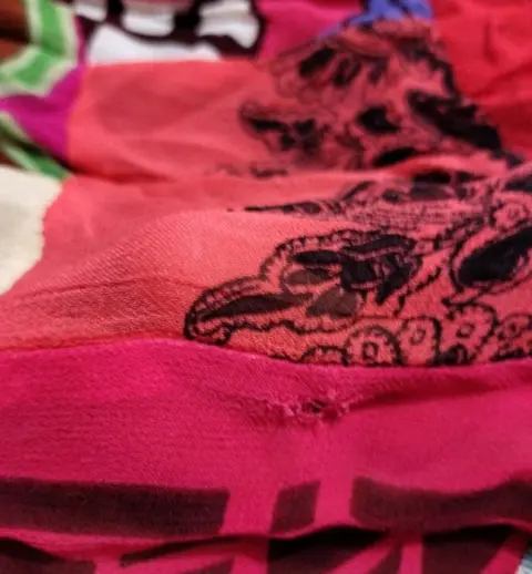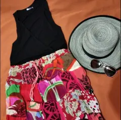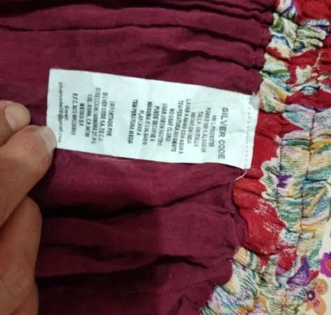 Falda poliéster con forro 100% algodón Hecho en INDIA, talla unitalla la cintura se ajusta un poco con cordoncitos.La tela es muy delgada, tiene un dellalles imperceptible que pongo en la última foto