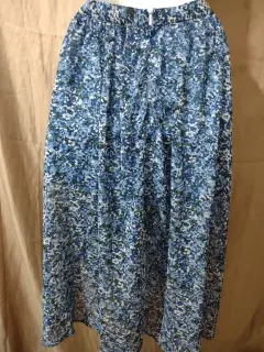 Falda larga de flores. Coqueta falda asimétrica de flore, azul. En perfecto estado, talla L.La parte de adelante es corta y atrás es larga.Con forro, broche y cierre en la parte de atrás, con pliegues en la cintura.Tela delgada y forro.Cintura: 38 cmLargo adelante: 54cmLargo atrás: 83cm