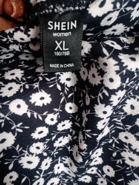 Falda larga shein. Bonita falta larga con coqueta abertura....talla XL negro con flores blancas estira muy bien impecable