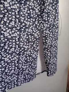 Bonita falta larga con coqueta abertura....talla XL negro con flores blancas estira muy bien impecable