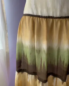 Preciosa falda larga de 3 colores, tipo degradado. Tiene forro, le va muy bien a una talla chica o mediana.Sus medidas son: 92cm de largo y 70cm de cintura.