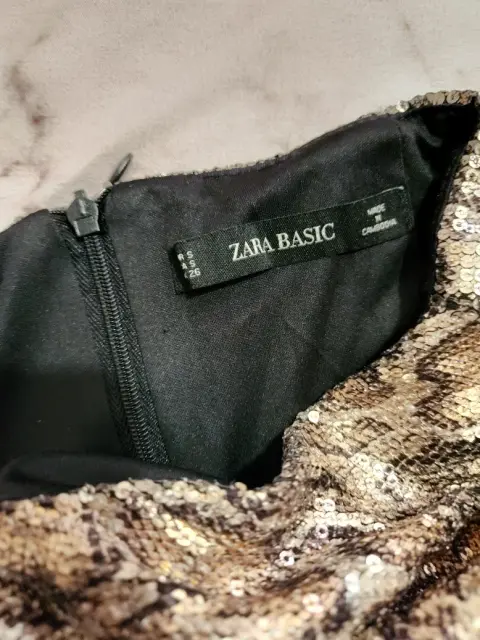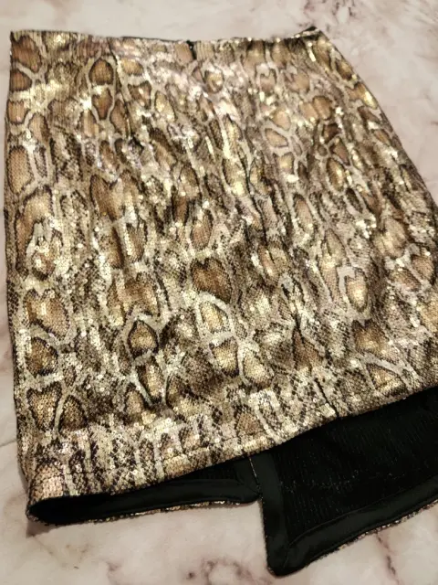 Falda lentejuela zara estampado serpiente mini, talla m drapeado y abertura delantera y cierre trasero tela elastica.