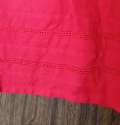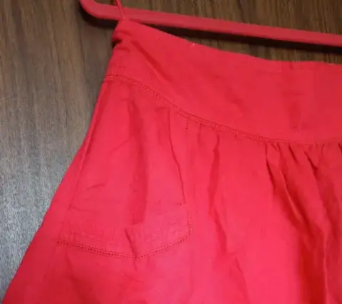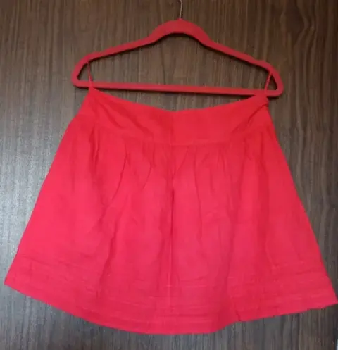 Falda corta roja, en línea "A"Talla MTela tipo lino, bolsas al frente, detalle tipo deshilado ligeramente plisada, cierre lateral oculto