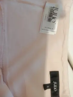 Falda corta, con corte circular, color palo de rosa, marca Julio sin detalles