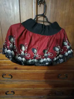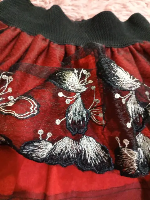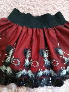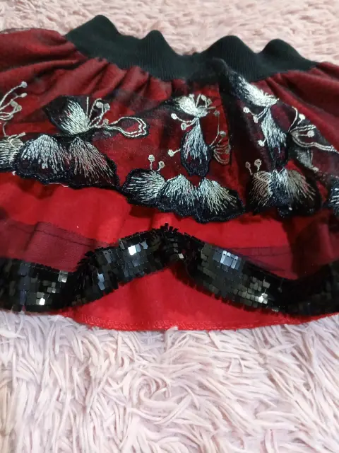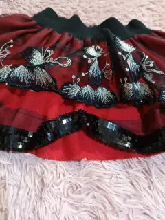 Falda marca SISTAR. Hermosa falda de tul fino con flores 💐 tejidas y otra hilera de tul fino con pequeñas lentejuelas cuadradas, negras, y un hermoso bordado en el tul fino de arriba, cinturón de resorte ancho y elástico que la hace unitalla, muy sexy y fashionable, te va a encantar.