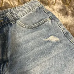 Preciosa falda corta. Tiene detalles al frente de roturas. Esta nueva pero me quedo un poco grande. Es talla 7 en azul claro, ningún detalle :)