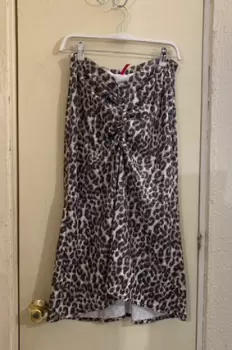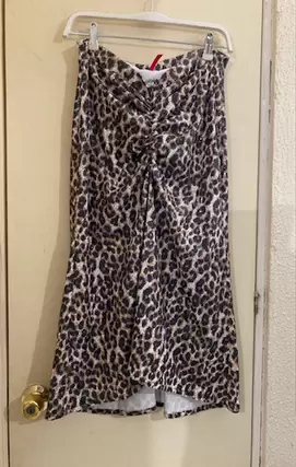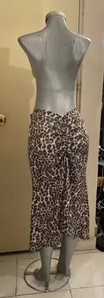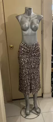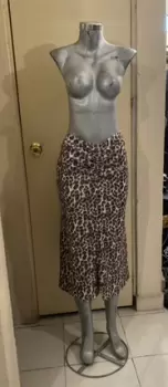 Falda midi animal print, talla s/m, tela estira, brillosa