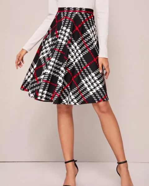Falda Midi de cuadros Shein. Falda amplia Midi de cuadros con hermosa caída y ajuste de cintura, ¿te encantó? Cómprala ahora y te la mando de volada..😉
