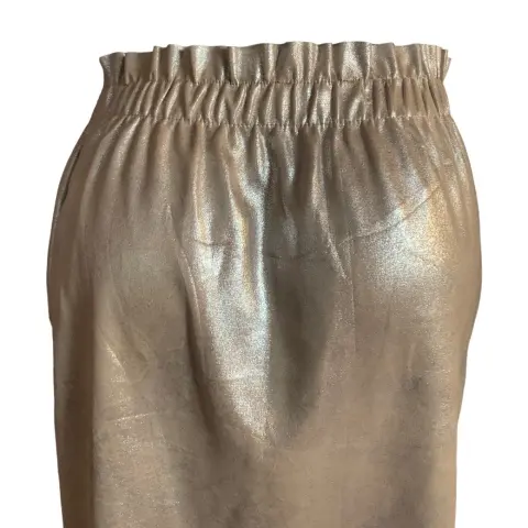 Falda midi dorada Zara. Haz que cada fiesta sea inolvidable. Tela totalmente cómoda para cualquier salida, esta falda cuenta con elástico para mayor ajuste abdominal, además de tela acolchada que la hace aún más conveniente para tu día a ía en la oficina. Brilla más que nunca y llama la atención con este diseño marca Zara