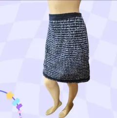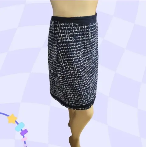 Falda Midi Formal Ann Taylor. Falda Midi Formal Ann Taylor, talla 10petite, color azul marino con blanco, con accentos exclusivos y elegantes, cierre y ganchillo en la parte de atras, bordo liso en cintura y parte baja, forrada por dentro, hecha de poliéster y nylon, mide 38cm de cintura, 51cm de cadera con 50cm de largo de la cintura hacia abajo, nueva sin etiqueta en buen estado cosmetico.