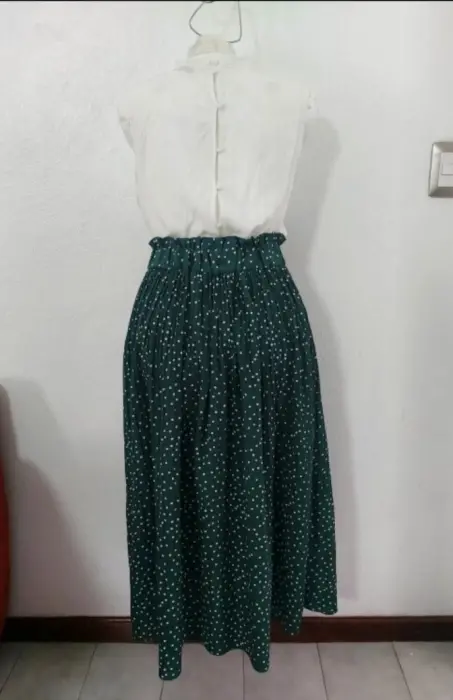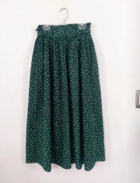 Falda Midi pisada Polka dot. Moderna Falda Plisada con estampado de lunares.Nueva sin etiquetas, solo tiene la de la talla.Talla MCintura alta con resorte que cubre tu estómago.Mismo modelo que la imagen 1Sin detalles y en perfectas condiciones.Tela 35% algodón y 65% poliéster.Tiene bolsas a los laterales.Cintura sin estirar el elástico son 34 cm pero estira hasta 47 cm..... es resorte grueso.Largo: 85 cmEstilo bohemio.