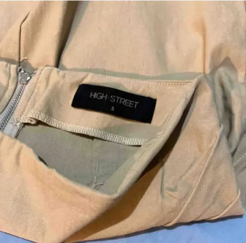 Sexy falda color beige , con cierre en la parte de atrás , talla S pero puede quedar xs .