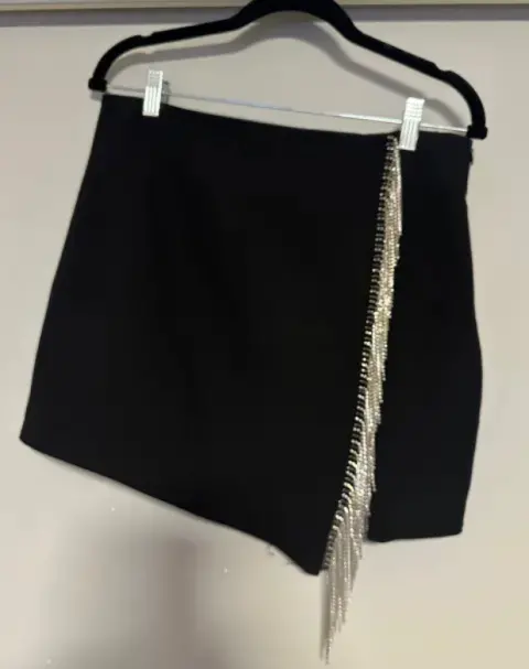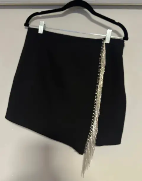 Falda mini flecos ZARA. Falda Mini flecos color negra marca Zara, en talla 30