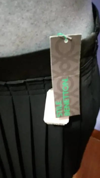 Falda negra BENNETON. Falda de tablas, color negro, nueva, con etiqueta, talla 42 (L).
