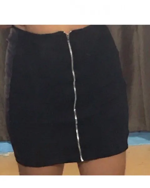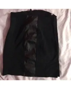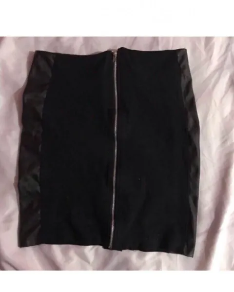 Falda negra corta. Falda cortita con tipo cuero a los lados súper linda tiene cierre por delante y tiene un pequeño detalle que se muestra en la ultima foto.