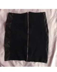 Falda cortita con tipo cuero a los lados súper linda tiene cierre por delante y tiene un pequeño detalle que se muestra en la ultima foto.