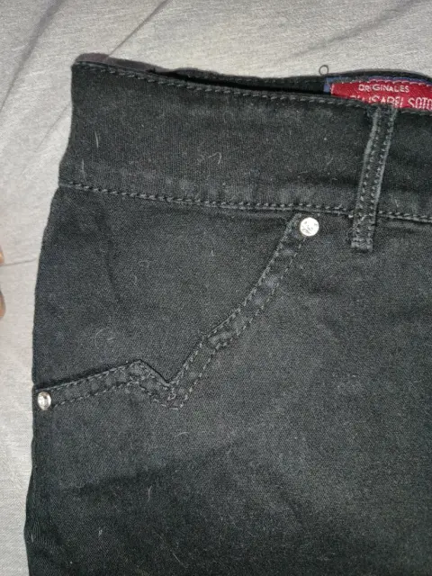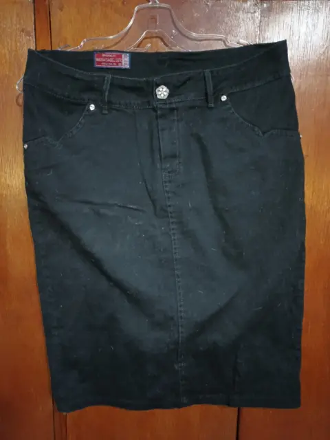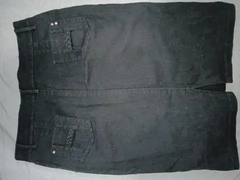Falda negra recta. Falda negra de algodón color negro, con una pequeña abertura en la parte trasera, detalles de brillos en los bolsillos delanteros y traseros, muy amplia de la cintura, espandex