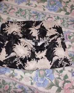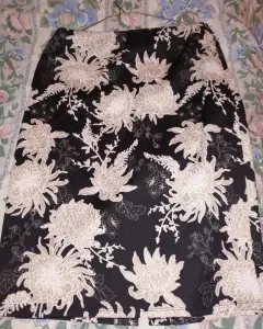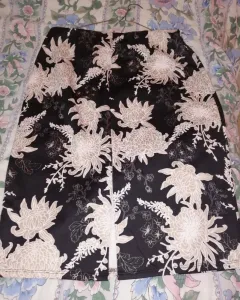 Falda strech, negra con flores grises, con resorte en la cintura, llega a la rodilla aprox.!!!