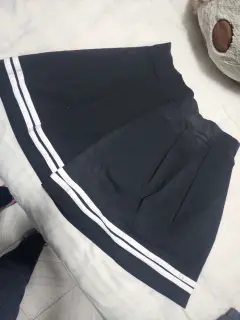 Falda negra con dos líneas blancas en la orilla, plisada, combinable con todo