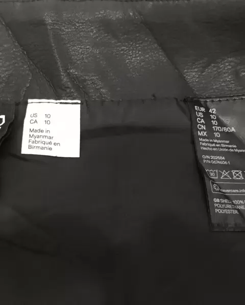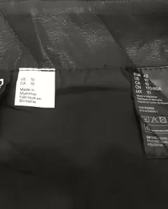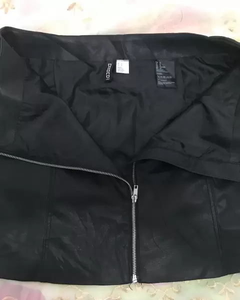 Falda negra vinipiel H&M. Falda tipo piel, cierre delantero, marcado como 42/10/L, 40cm cintura, 52cm cadera, 41cm largo.